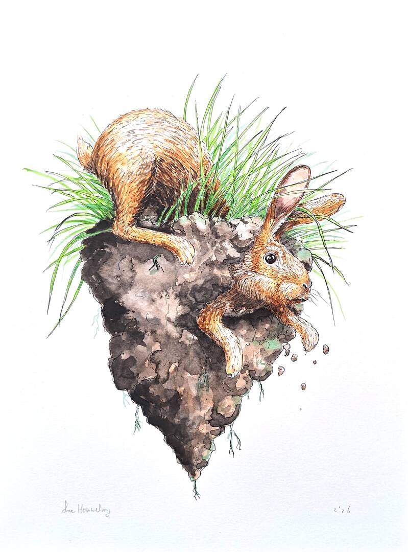 Het werk dat op deze pagina is te zien is gemaakt op 360 grams papier, 30 x 40 cm., meestal met aquarelverf, inkt en/of acrylverf. Het werk wisselt steeds en is te zien en te koop in mijn atelier, op de Spui kunstmarkt maar ook vanaf deze site.